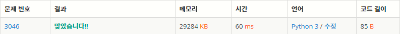 이 글에서 살펴볼 문제는 백준 3046번입니다.